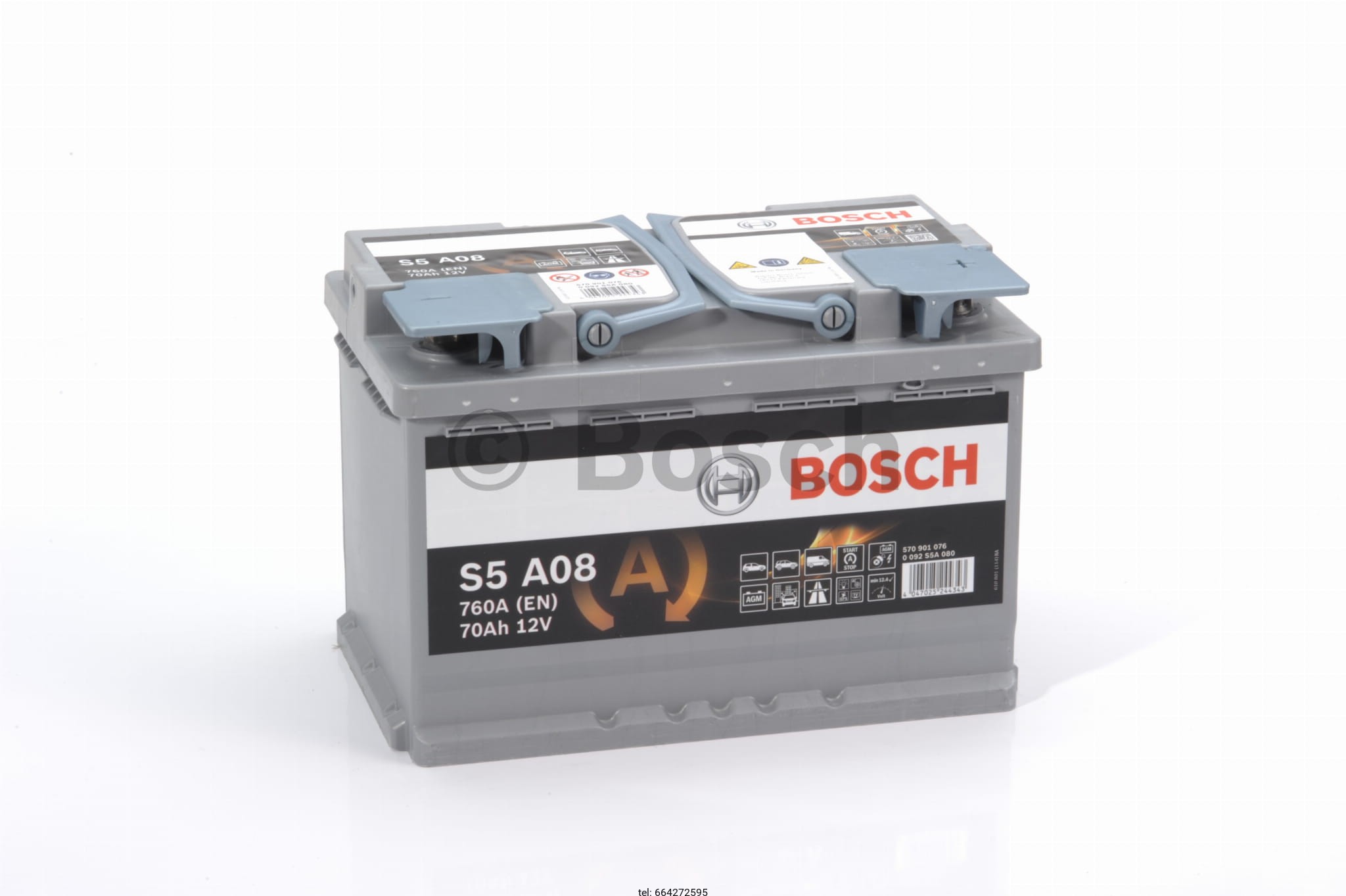 Parametry Bosch S5 A08 12V 70AH 760A (EN),polaryzacja P+ wymiary w mm: dł/szer/wys/ 278/175/190. Akumulator wykonany w technologii AGM (start&stop).