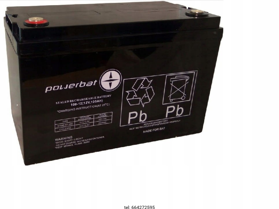 Akumulator Powerbat Gel 12V 100 AH polaryzacja L+ Akumulator głębokiego rozładowania (deep cycle).