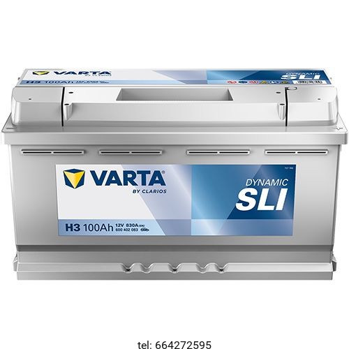 Varta Dynamic SLI H3 12V 100AH 830A (EN). Wymiary w mmDxSxW- 353x175x190. Układ biegunów 0 (+P - prawy dodatni) Rodzaj biegunów 1 (standardowy) Rodzaj mocowania B13 Skrócony kod producenta H3.Kod producenta 600 402 083